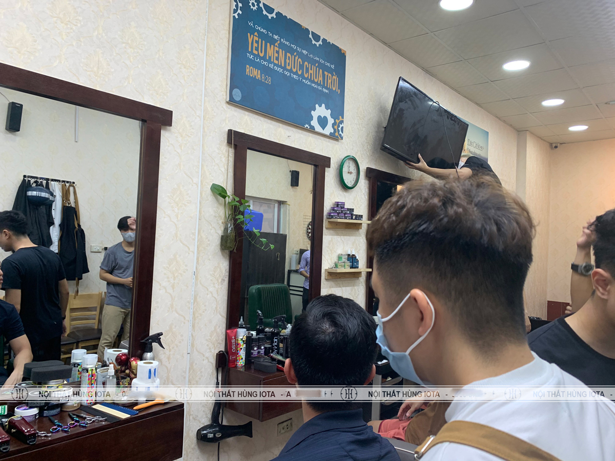 Gương cắt tóc hình chữ nhật có tủ đạt tiêu chuẩn xuất khẩu sang khắp các thị trường trong và ngoài nước, được nhiều khách hàng lựa chọn và tin dùng. Nội thất Hùng Iota nhận sản xuất kệ treo tường theo yêu cầu của khách hàng từ màu sắc tới kích thước yêu cầu.
