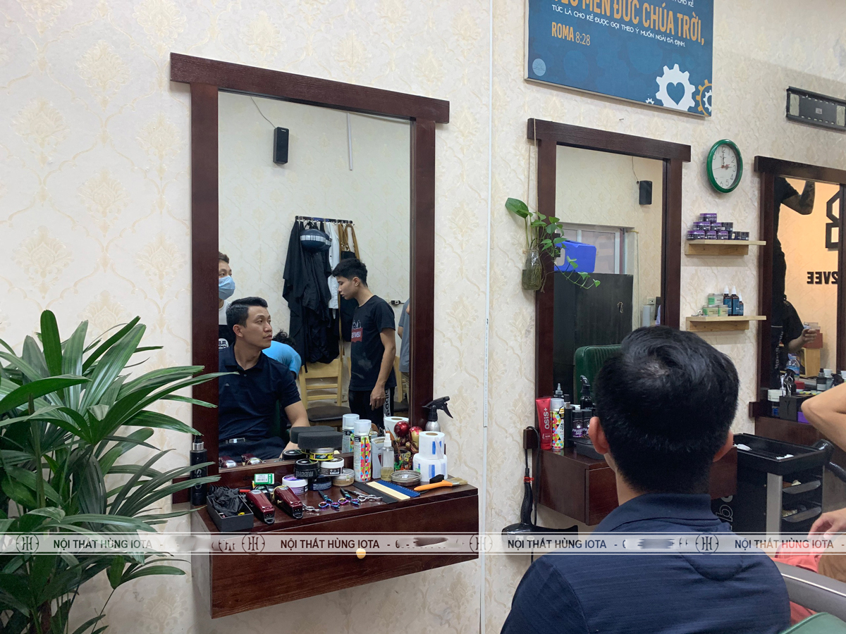 Gương cắt tóc hình chữ nhật và tủ barber dưới gương để cất phụ tùng tiện lợi đẹp, giá rẻ, decor